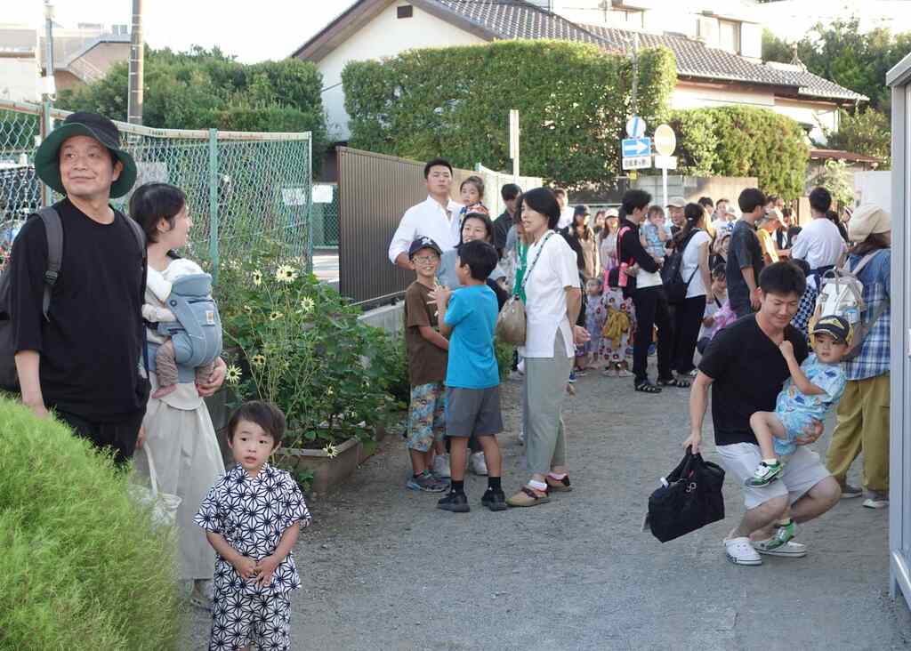 開場を前に、おうちの方と一緒に、ウキウキ顔で集合する子どもたちの様子です。