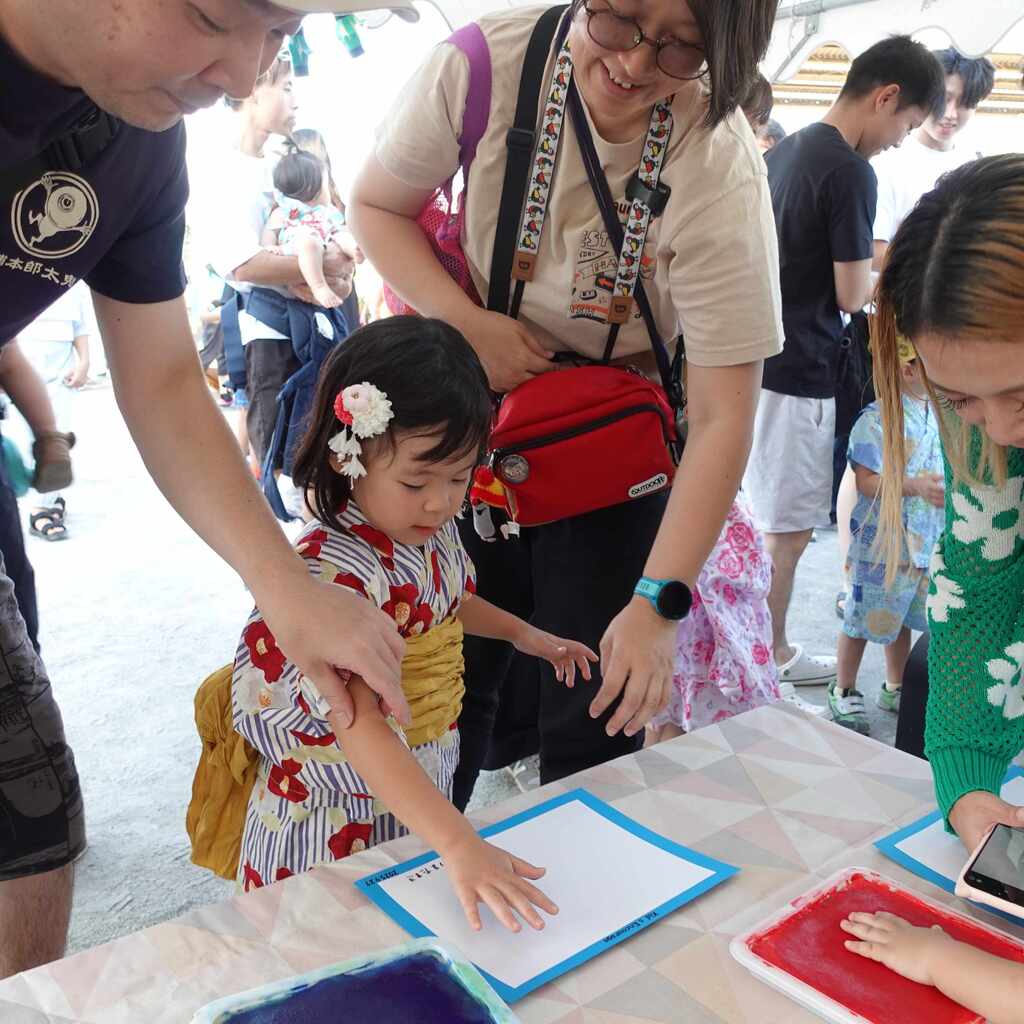 手形スタンプは毎年大人気。小さい子はおうちの方と一緒に、大きい子は押し方にこだわりながら、世界に一つだけの作品を完成させました。