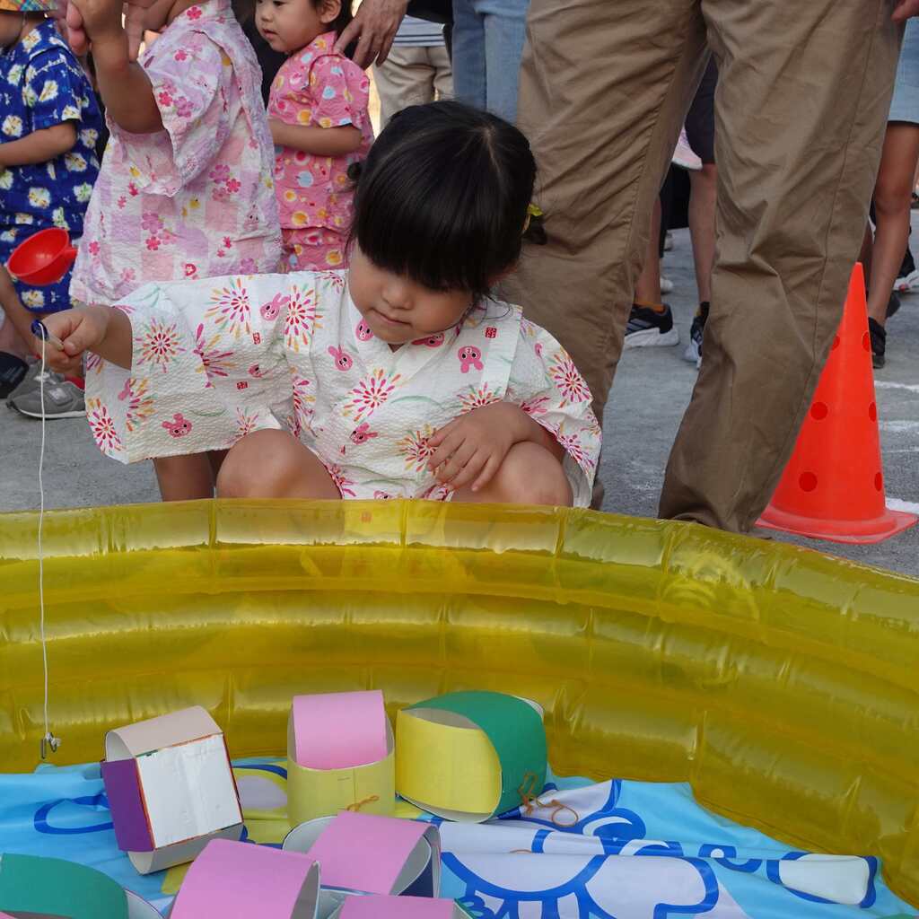 「ヨーヨー釣り」では、牛乳パックで作った大小さまざまなヨーヨーを自分で選んでゲット。手にしたヨーヨーを持ち歩いて遊ぶ姿が見られました。
