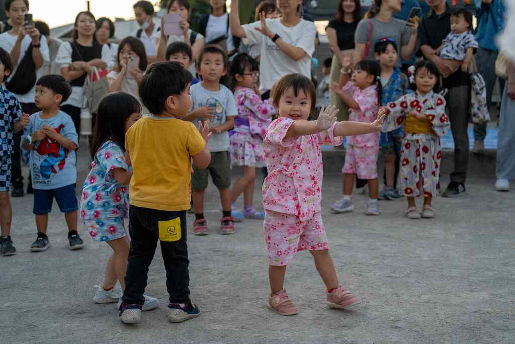 やぐらを囲んだ踊りの輪の真ん中では、小さな子たちが堂々と踊る姿が!😆♥️
