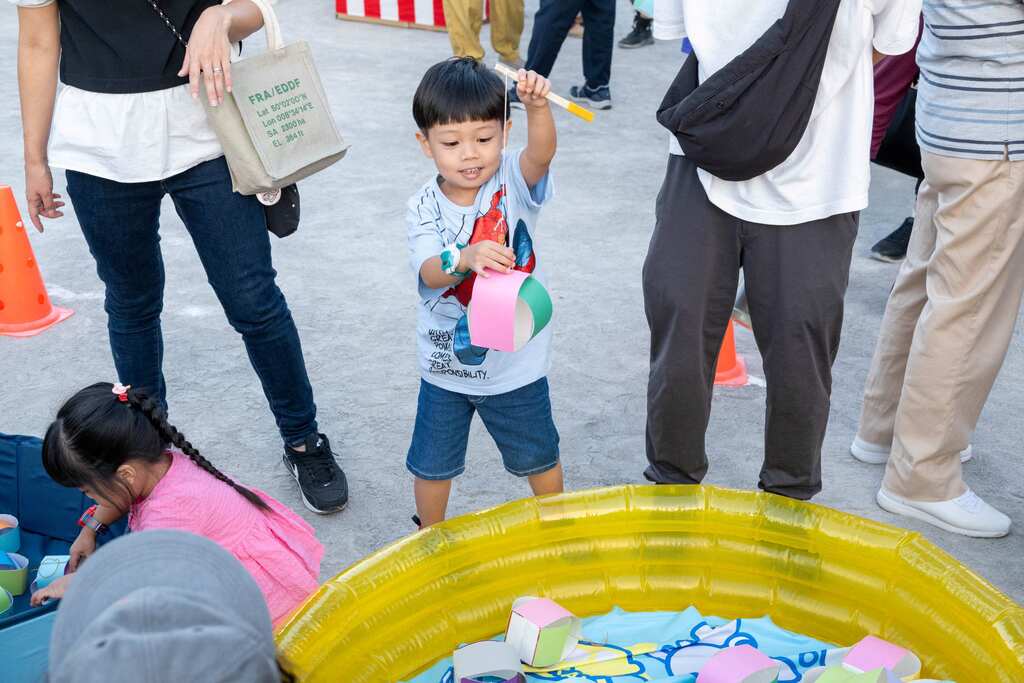 今年は新アトラクションも登場。箱を積み上げる「つむつむ」や、年齢別のコースを選べる「ボール転がし」、リングに投げ入れる「ボールIN」があり、子どもたちは挑戦を重ねながら夢中で楽しんでいました。