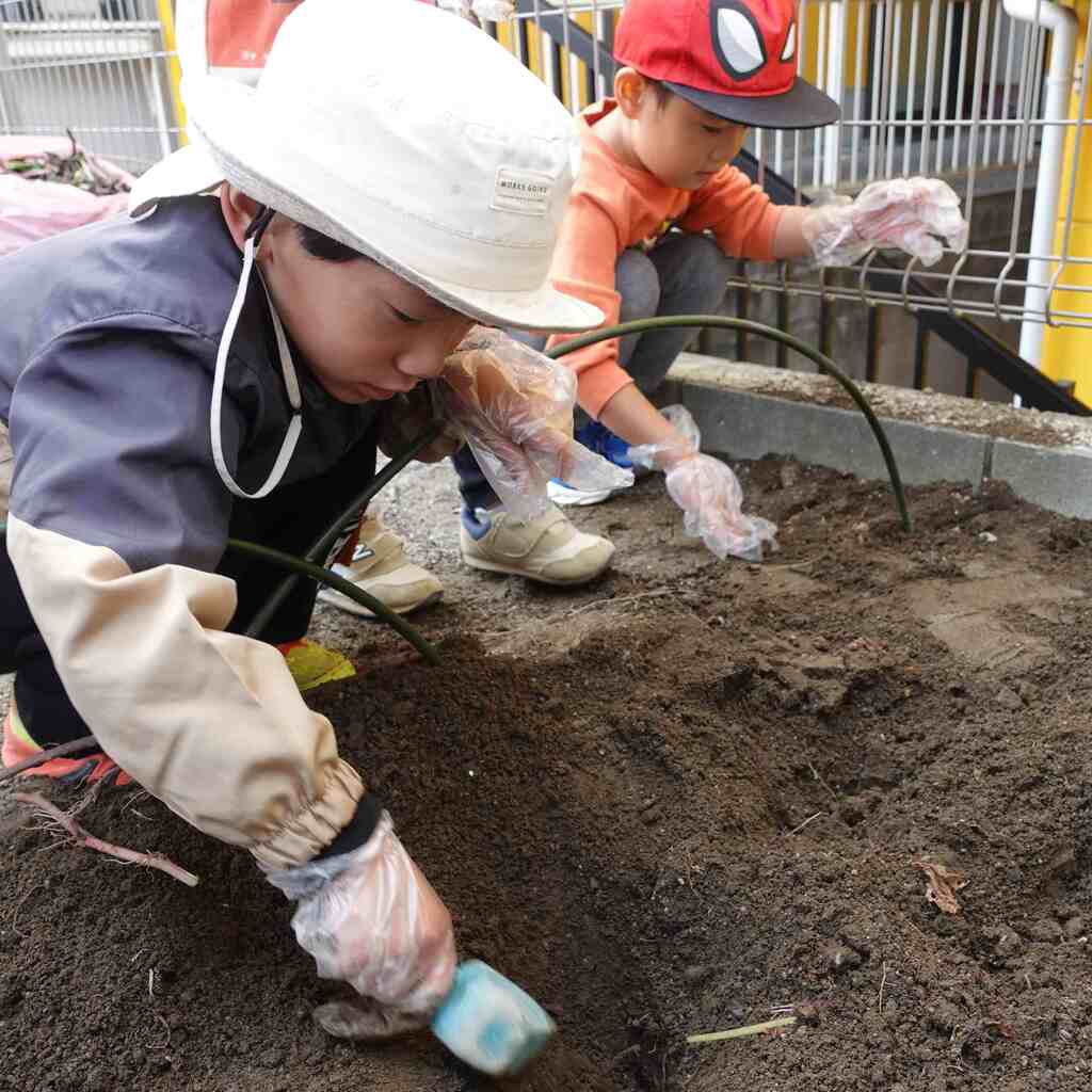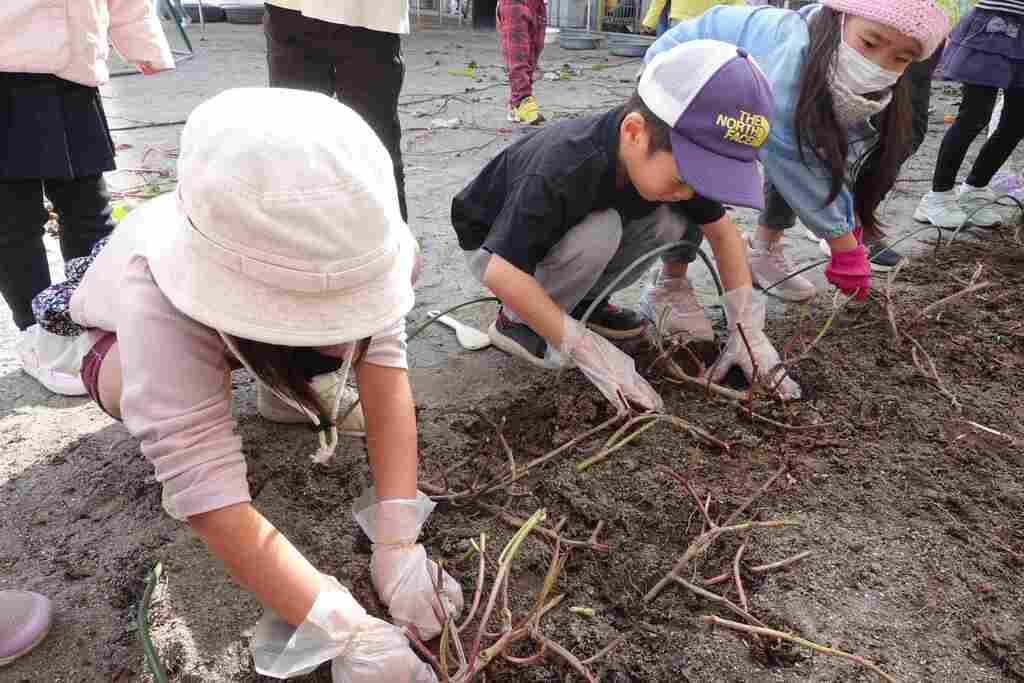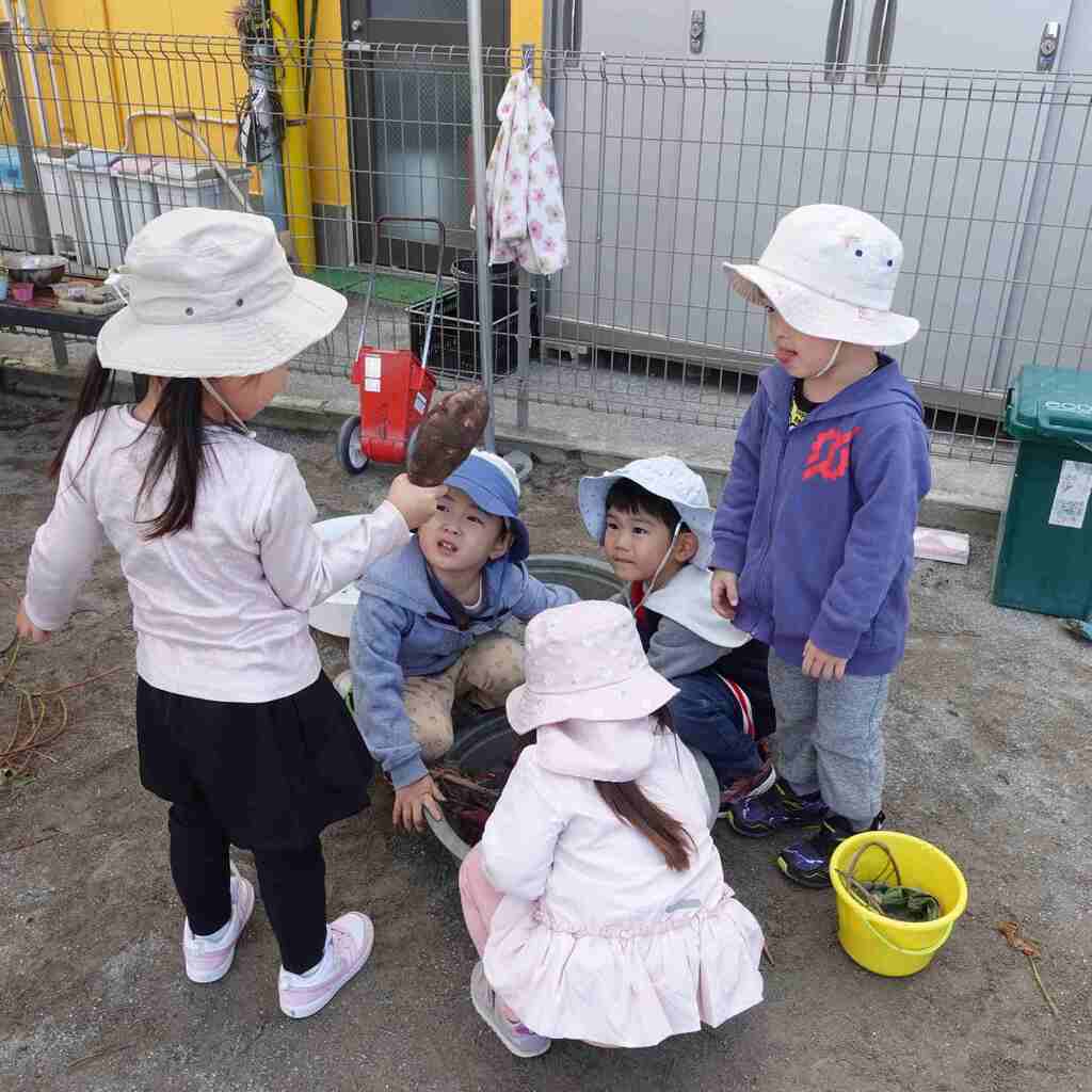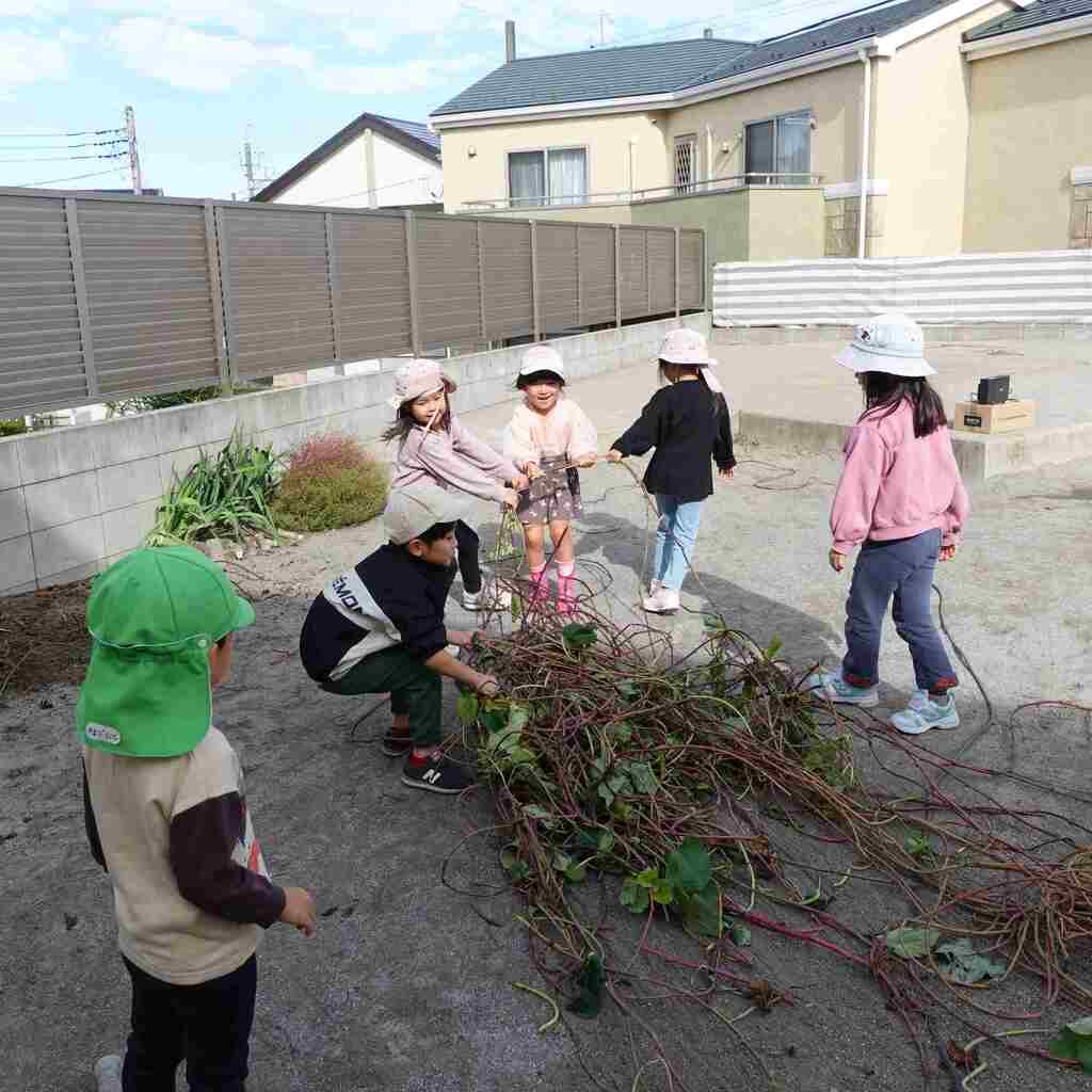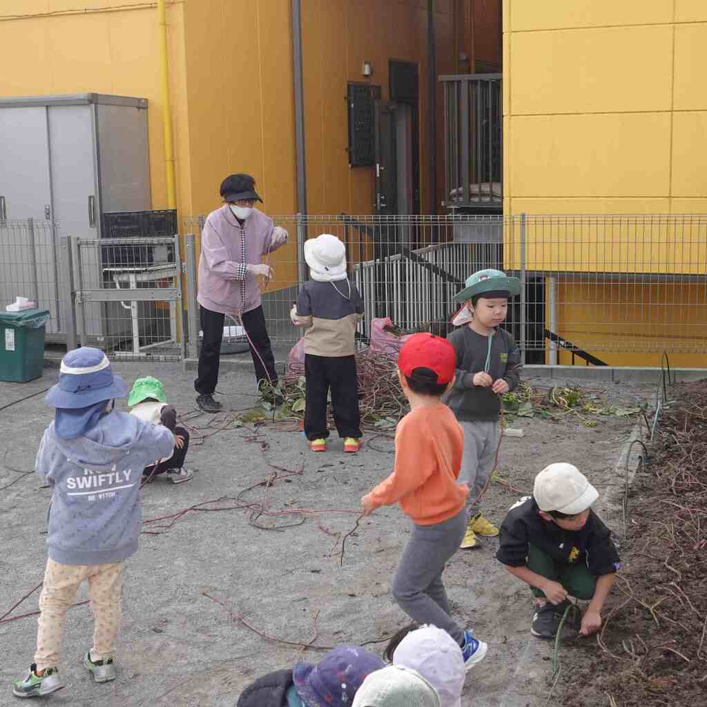 子どもたちは自然に触れることで、「植物は生長し、やがて枯れ、土地にかえることや、今回のお芋のように太陽と水と土と(養分もふくめ)空気などが成育条件になって植物が育つこと」などを次第に認識していくようになるのですね。そんな体験を日常の中で大事にしていきたいと思います。