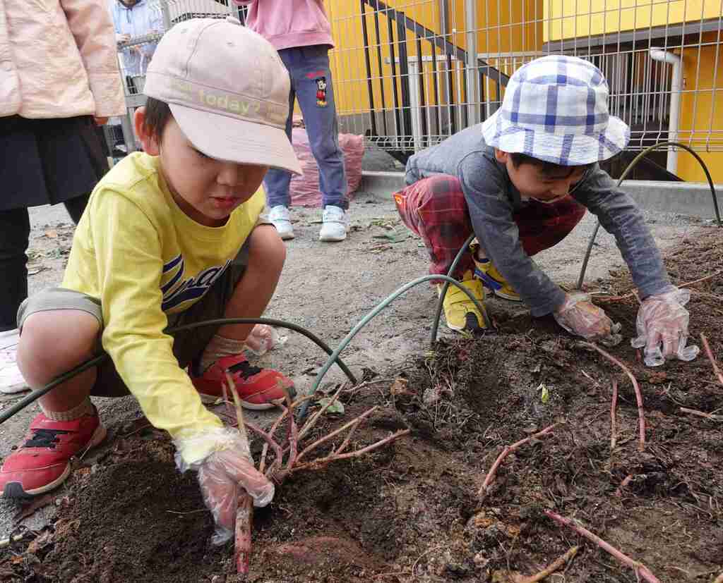 「これ、どこまでがお芋?えっ?まだお芋じゃない?つるなの?」と、なかなか出てこないお芋を掘って探します。
