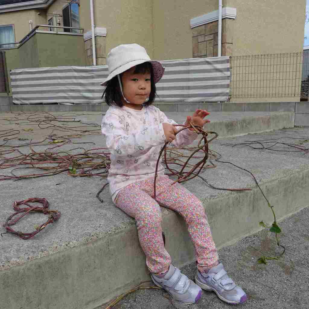 長~い芋のつるは子ども達の絶好の遊び道具に。