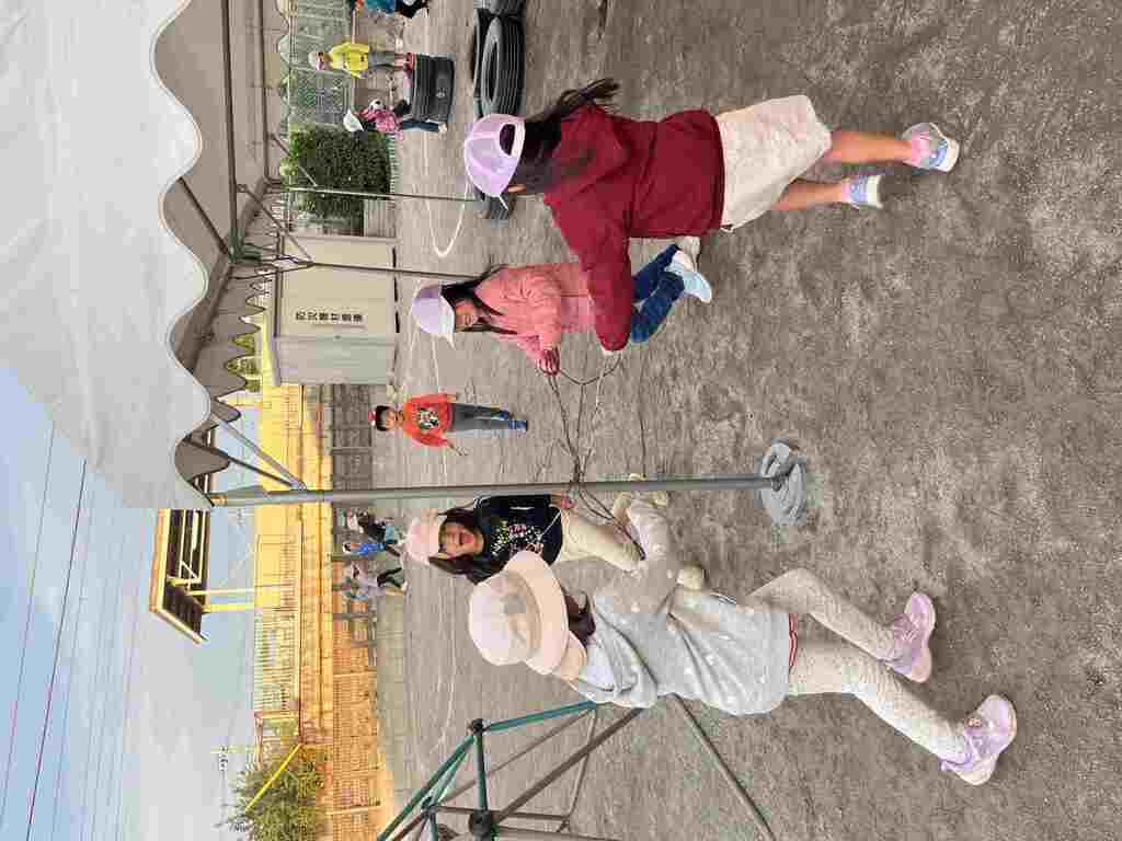 編んで丸くしてみたり、数人で引っ張り合ってぐるぐる回るロープ代わりにしたり、電車ごっこになったり、想い想いに工夫しながら様々な遊びを展開していました。