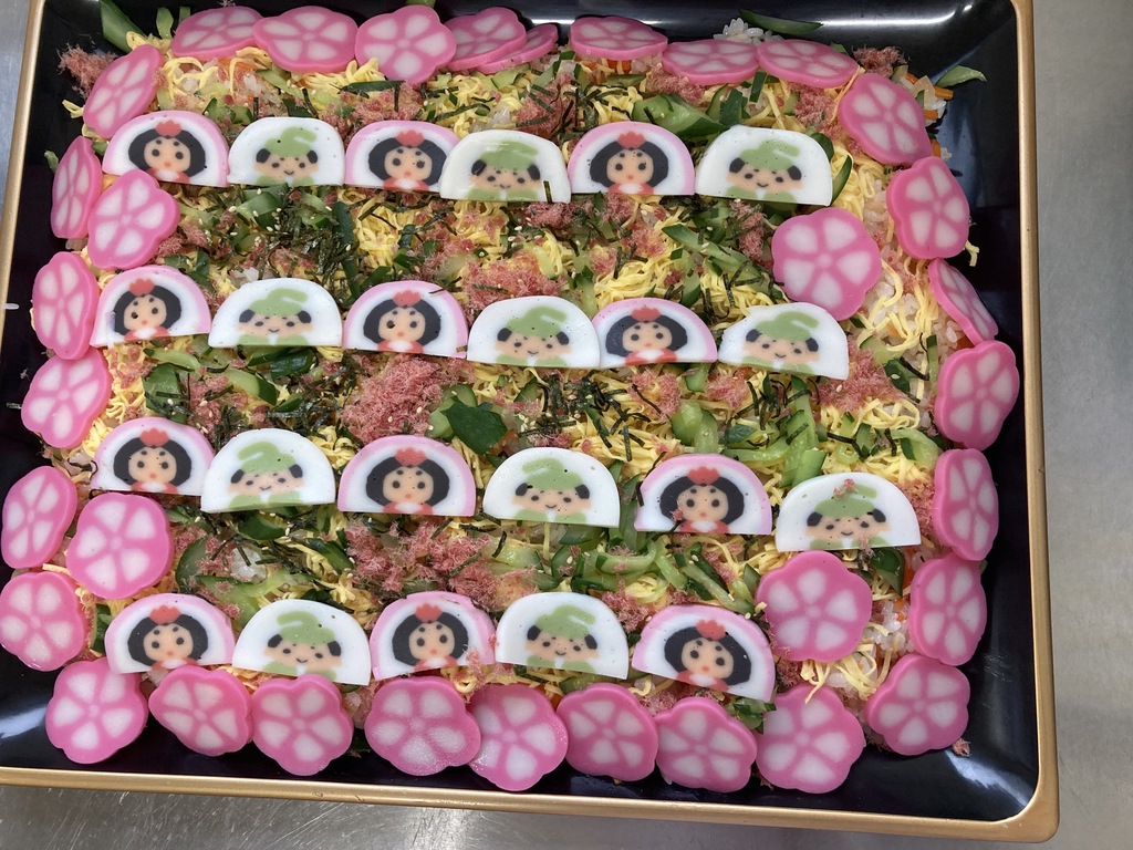3月3日(火)今日のひなまつり給食 Posted on 2026年3月3日2026年3月3日 by Kids Encourage ちらし寿司、ししゃもフライ、温野菜、菜の花おひたし、寒天 おやつ、三色だんご、いちご、ひなあられ、牛乳